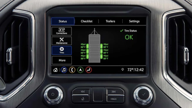 Apple CarPlay® and Android Auto™ are paired with a standard 7-inch infotainment touchscreen. Premium features are packed into the GMC Sierra 1500 Denali trim, which offers navigation and a Bose premium audio system. The new GMC Sierra 1500 also offers an available 8-inch Digital Driver Information Center, an in-vehicle trailering app, Smart Trailer Integration, Jackknife Alert, and a Tire Pressure Monitoring system.