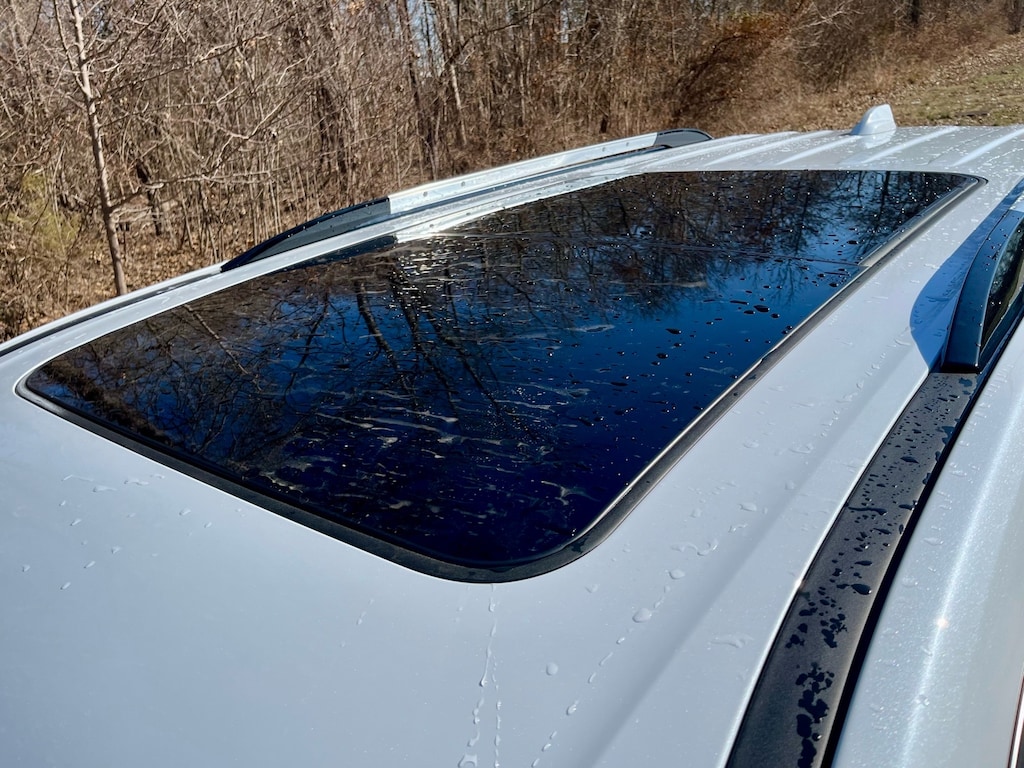 - Brushed aluminum roof-mounted side rails: