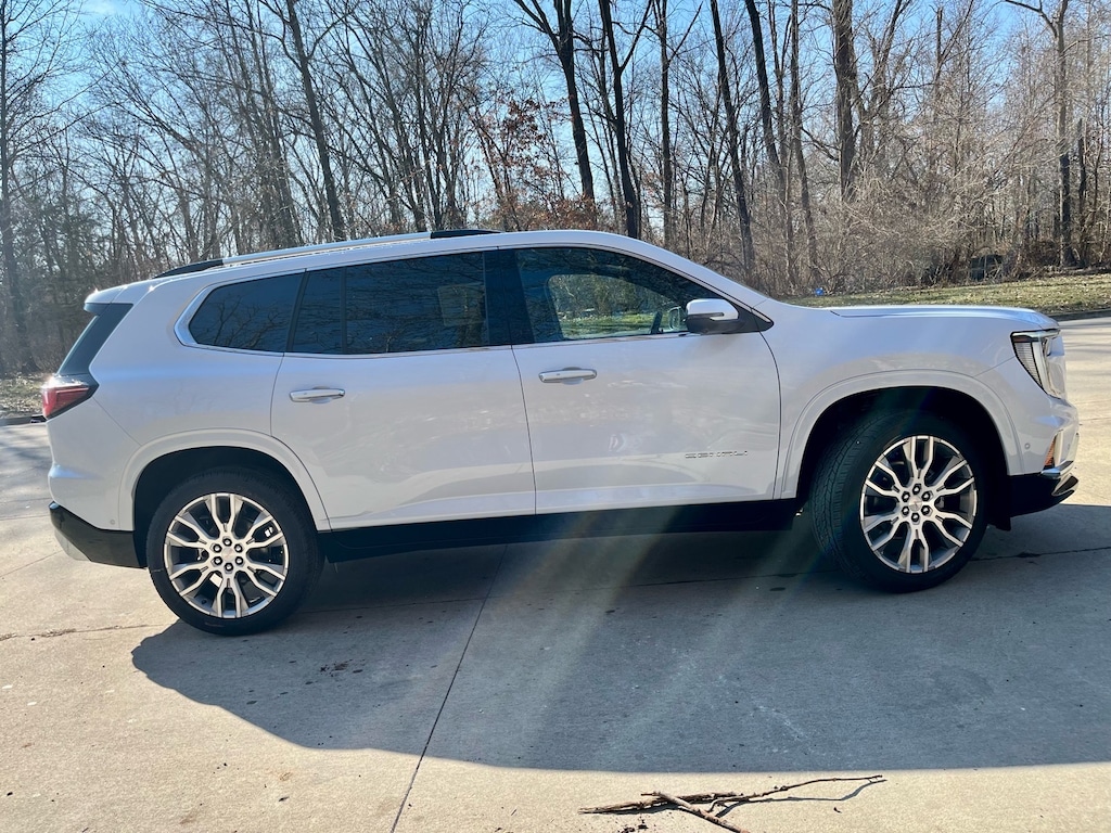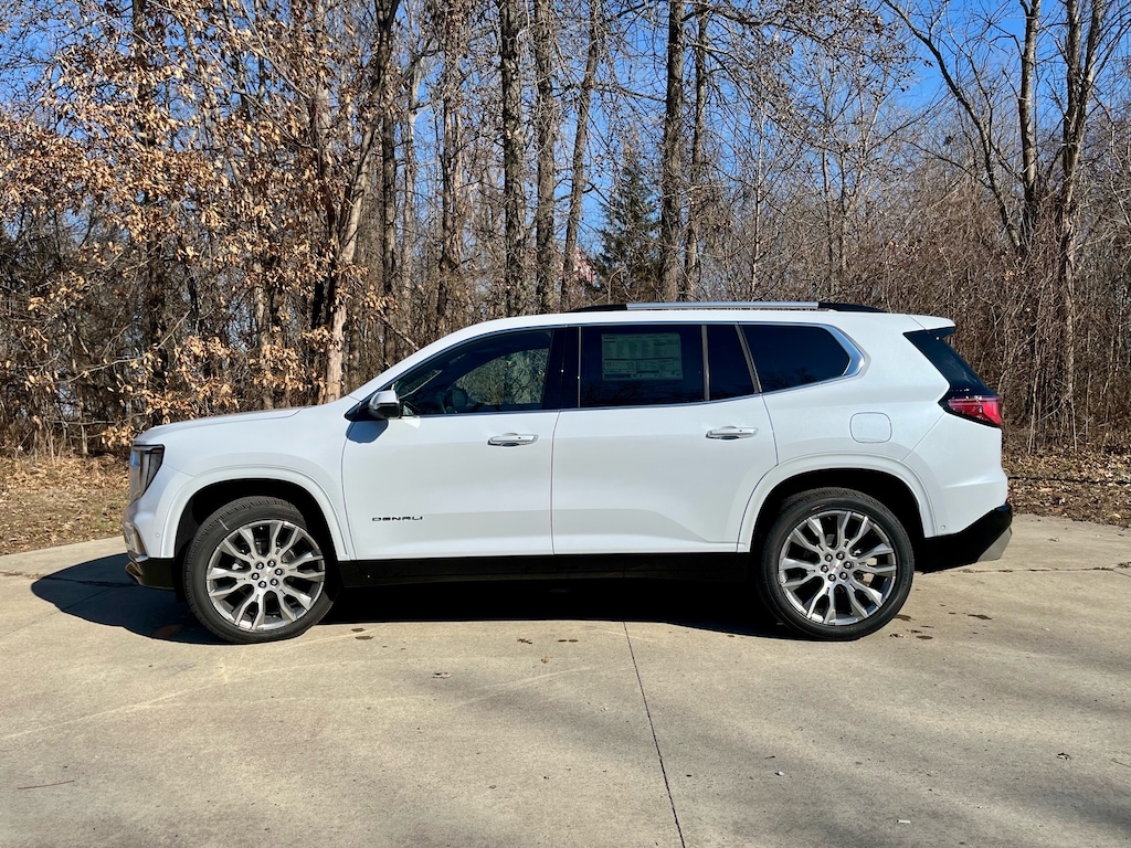 Beautiful 2026 GMC Acadia Denali in Glacier White with 22 inch Pearl Nickel Aluminum Wheels! Equipment includes: Super Cruise, performance suspension, remote start, heated 1st & 2nd row seats, ventilated seats, heated steering wheel, panoramic sunroof, navigation, surround vision camera w/ front & rear park assist sensors, power seats, 15 inch touchscreen w/ wireless Apple CarPlay/Android Auto, head up display, adaptive cruise control, blind zone steering assist, lane keep assist w/ lane departure warning, forward collision alert, automatic high beams, power liftgate, 2nd row bucket seats, digital rear camera mirror, trailering package, Bose Audio System, all-weather floor liners, plus much more!! Vehicle comes with a 3yr/36K mile factory bumper to bumper, 5yr/60K mile factory powertrain warranty, & first maintenance visit is free!
