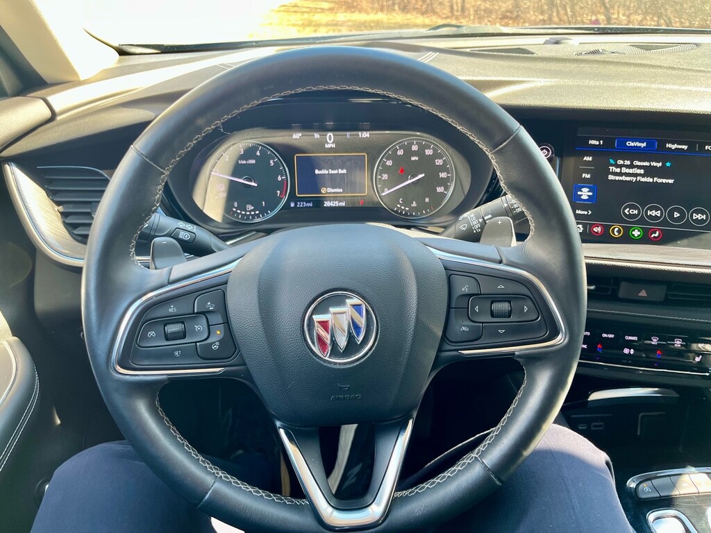 Moonstone Gray Metallic 2023 Buick Envision Essence with 28K miles!! Equipment includes: remote start, heated seats, heated steering wheel, hands free power liftgate, Apple CarPlay/Android Auto, power seats, dual climate control, lane keep assist w/ lane departure warning, forward collision alert, back-up camera w/ rear park assist sensors, automatic high beams, plus much more!! Balance of 3yr/36k mile factory bumper to bumper and 5yr/60K mile factory powertrain warranty remains.