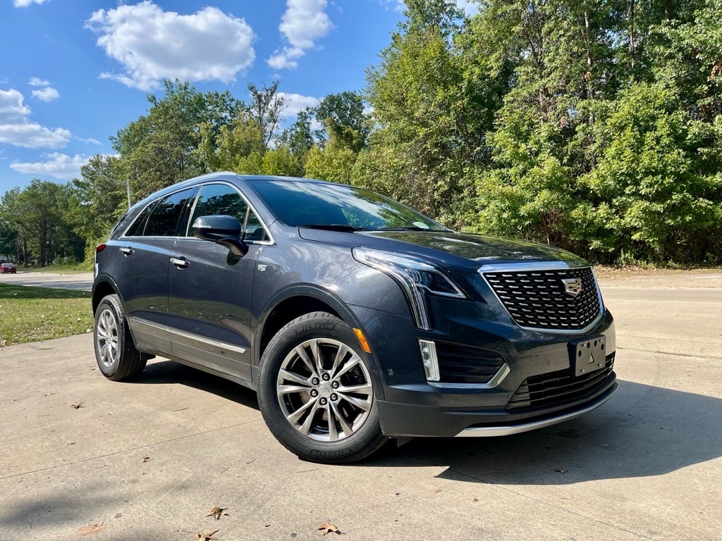 Dark Gray 2021 Cadillac XT5 Premium Luxury AWD, with 4 NEW tires!! Equipment includes: remote start, heated seats, heated steering wheel, panoramic sunroof, Bose 14 Speaker Audio System, Apple CarPlay/Android Auto, Head Up Display, digital rear camera mirror, navigation, hands free power liftgate, power seats, dual climate control, rain sensing wipers, automatic high beams, lane keep assist w/ lane departure warning, forward collision alert, surround vision camera w/ front & rear park assist sensors, automatic parking assist w/ braking, plus much more!! Balance of 6yr/70K mile factory powertrain warranty remains.