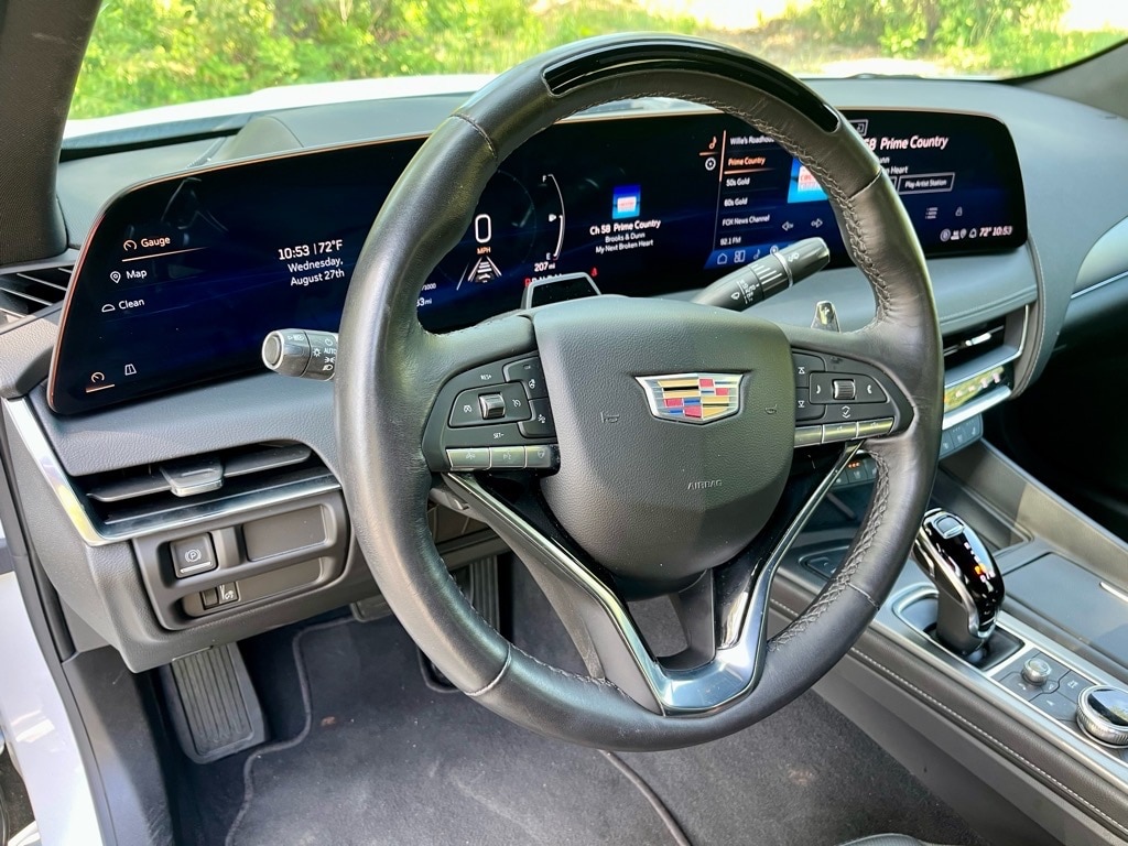 Sharp looking 2025 Cadillac CT5 Premium Luxury, with 16K miles, in Summit White!! Equipment includes: remote start, power massaging seats, heated seats, ventilated seats, heated steering wheel, panoramic sunroof, AKG 15 speaker audio system, navigation, dual climate control, rain sensing wipers, automatic high beams, forward collision alert, blind zone steering assist, rear cross traffic alert, HD surround vision camera w/ front & rear park assist sensors, super cruise capability, adaptive cruise control, automatic parking assist, plus much more!! Balance of 4yr/50k mile factory bumper to bumper and 6yr/70K mile factory powertrain warranty remains.