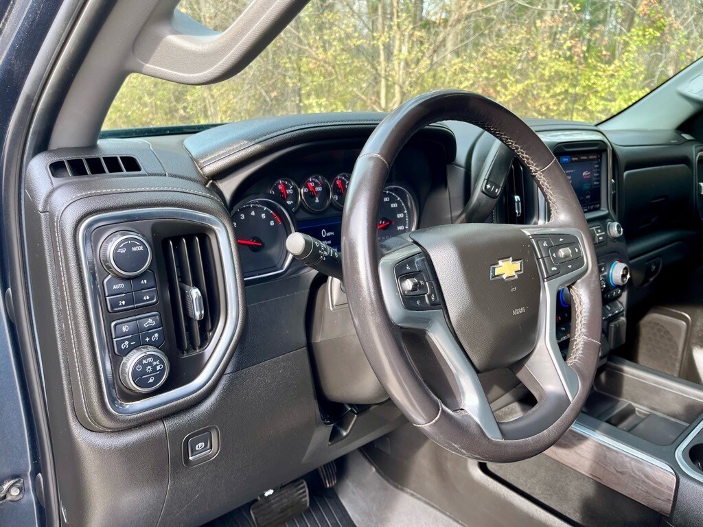 2022 Chevrolet Silverado 1500 LTZ Crew Cab 4x4 in Shadow Gray!! Local trade-in, clean Carfax Report, and tires are in great shape!! Equipment includes: remote start, heated seats, heated steering wheel, ventilated seats, dual climate control, spray-on bedliner, lane change alert w/ side blind zone alert, back-up camera w/ front & rear park assist sensors, Apple CarPlay/Android Auto, power seats, tow package w/ trailer brake controller, plus much more!! Balance of 5yr/60K mile factory powertrain warranty remains.
