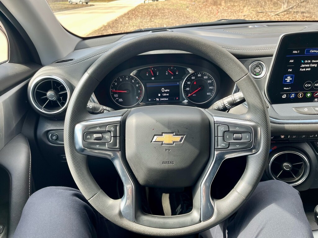 Riptide Blue 2024 Chevrolet Blazer 2LT, with 24K miles, & a clean Carfax Report!! Equipment includes: remote start, heated seats, dual climate control, power liftgate, adaptive cruise control, lane change alert w/ side blind zone alert, lane keep assist w/ lane departure warning, forward collision alert, rear cross traffic alert, automatic high beams, Apple CarPlay/Android Auto, power drivers seat, back-up camera, universal home remote, plus much more!! Balance of 3yr/36k mile factory bumper to bumper and 5yr/60K mile factory powertrain warranty remains.