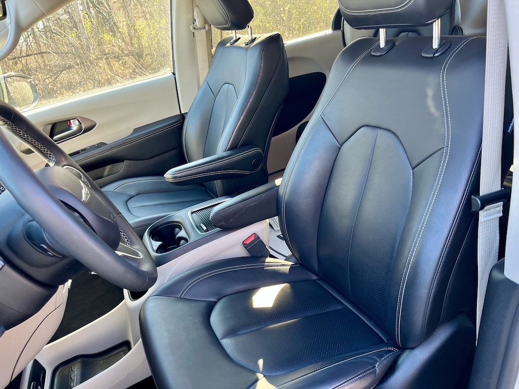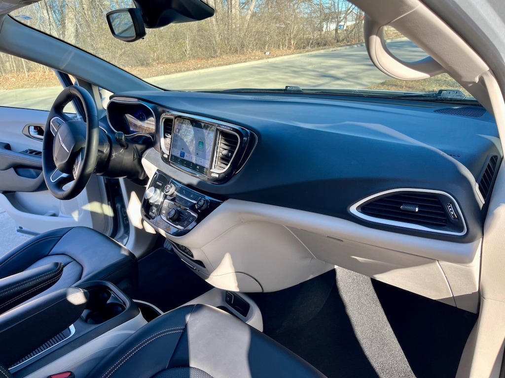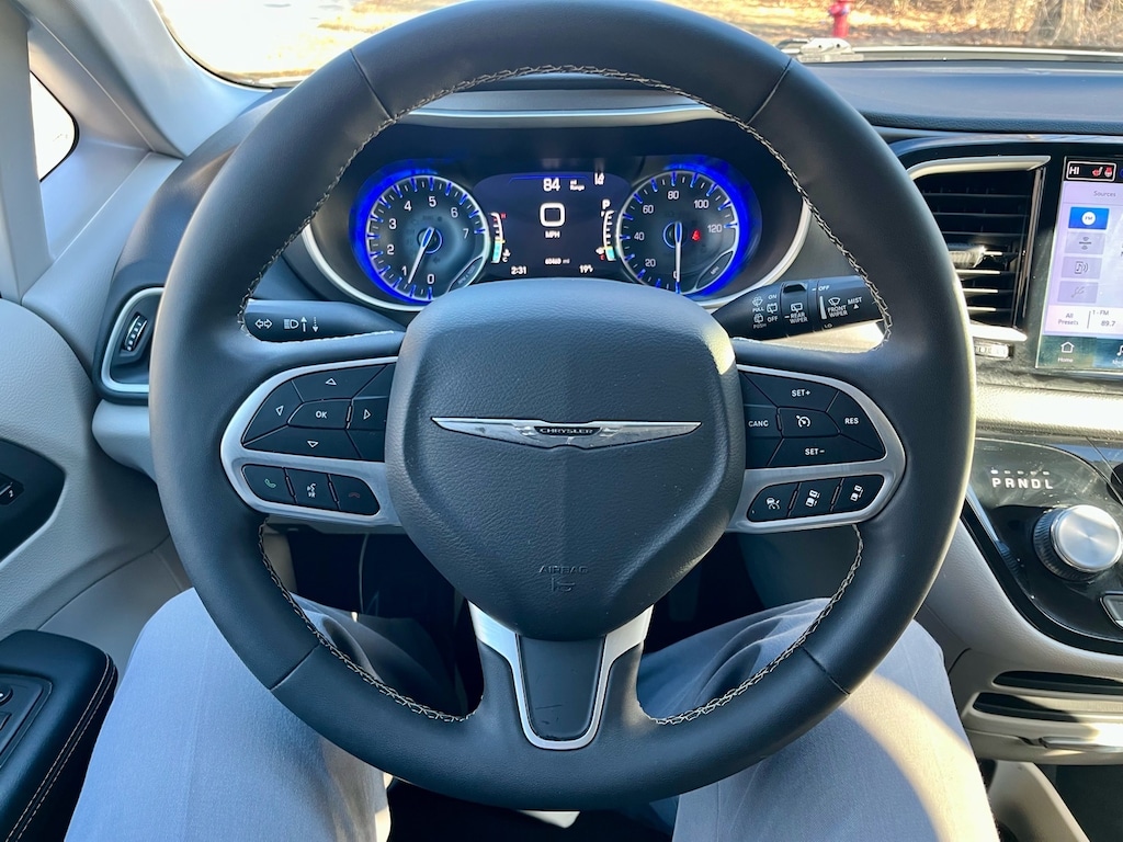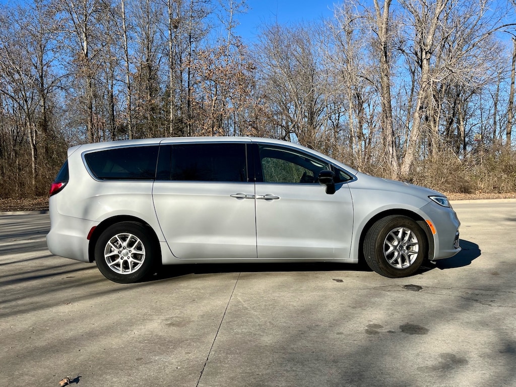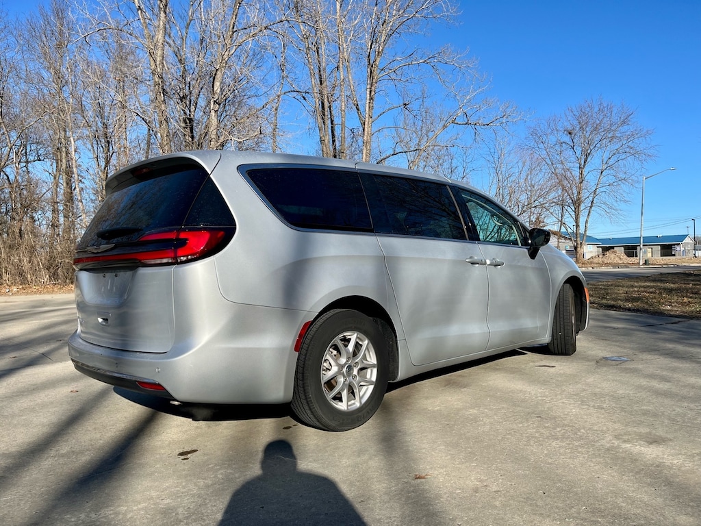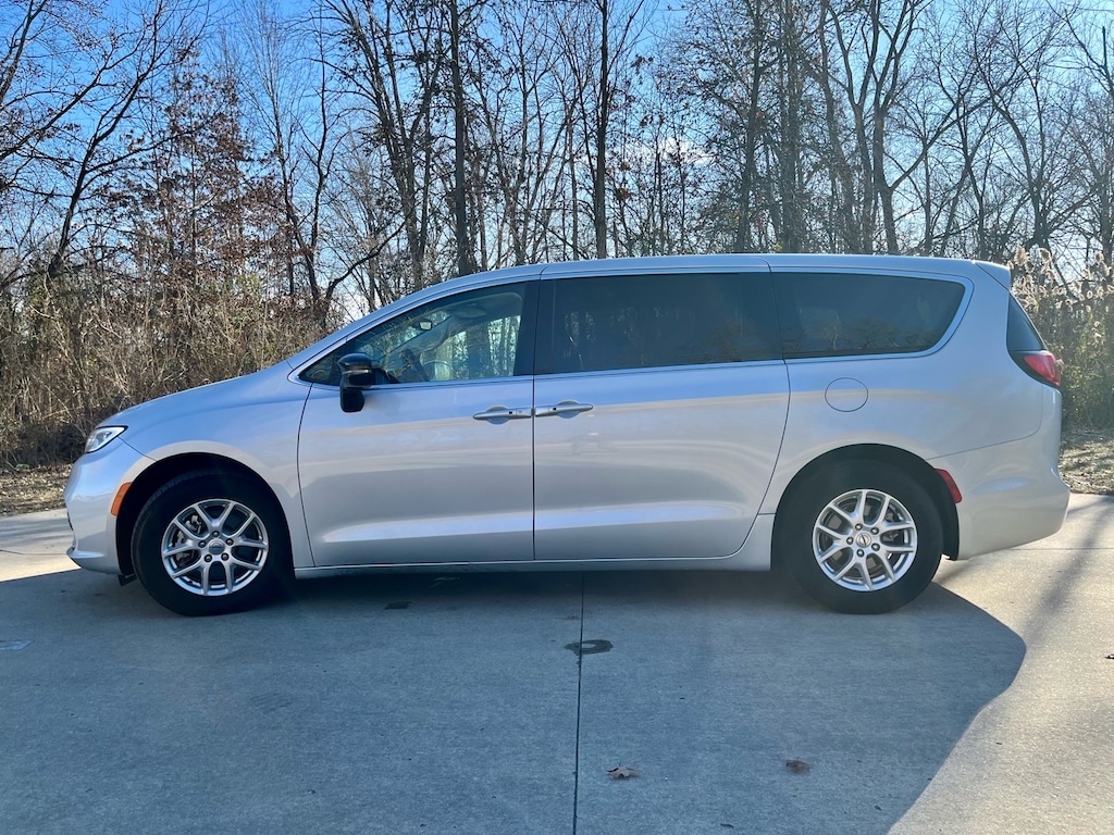 Silver Mist 2024 Chrysler Pacifica Touring L equipped with: remote start, heated seats, heated steering wheel, power drivers seat, 10.1 inch touchscreen radio, wireless Apple CarPlay/Android Auto, power sliding doors, power liftgate, rain sensitive wipers, lane departure warning, adaptive cruise control, blind spot & rear cross path detection, forward collision warning, back-up camera w/ rear park assist sensors, dual climate control, plus much more!!