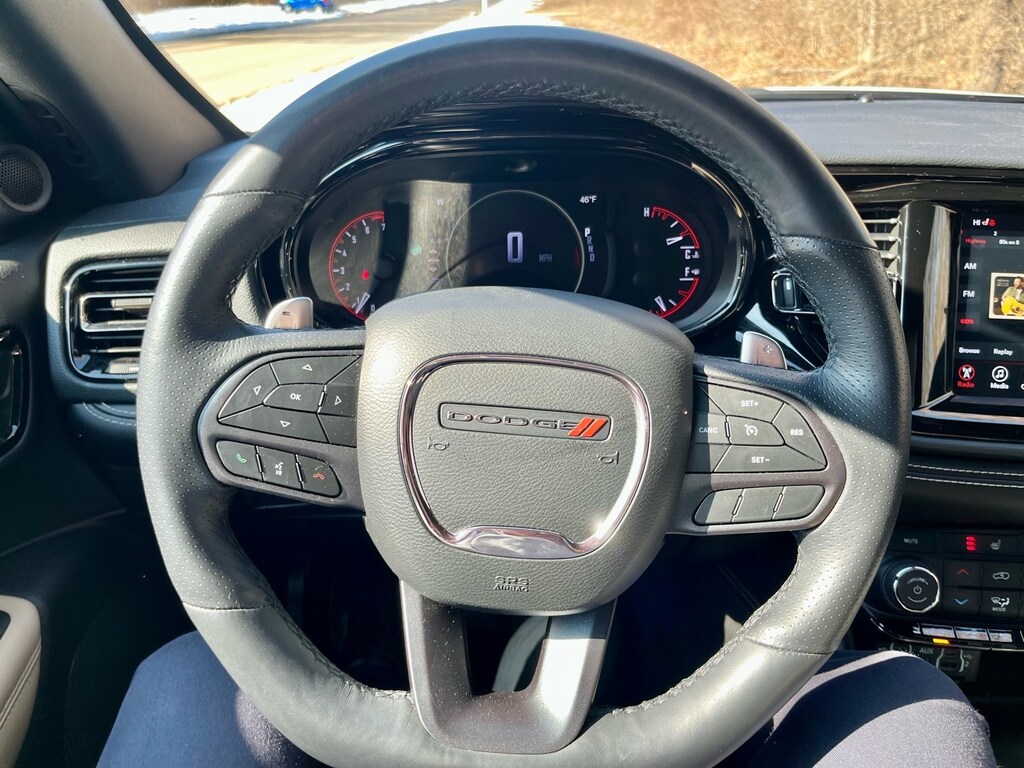 Very well taken care of 2022 Dodge Durango GT AWD, with 38K miles, 1 owner, local trade-in, & clean Carfax Report!! Equipment includes: remote start, heated seats, heated steering wheel, 2nd row bucket seats, back-up camera w/ rear park assist sensors, 8.4 inch touchscreen, Apple CarPlay/Android Auto, blind spot monitoring, rear cross path detection, power liftgate, Alpine speaker system, power driver seat, tow package w/ trailer brake controller, dual climate control, plus much more!! Balance of 5yr/60K mile factory powertrain warranty remains.